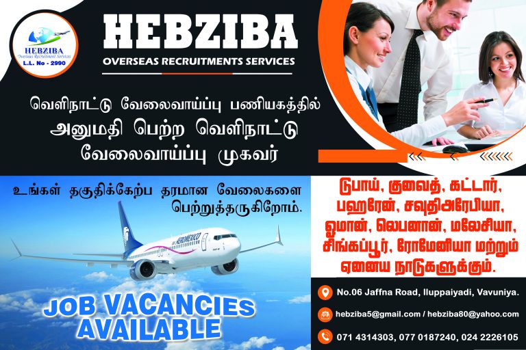 With branch offices in Vavuniya, Hatton, and Colombo, and partnerships extending to India and Dubai, our reach is both local and international. At Hebziba, our mission is to uplift lives by enabling access to quality overseas employment while delivering excellence in recruitment services. Whether you’re a candidate seeking global career opportunities or a company searching for top talent, Hebziba is here to guide and support you every step of the way.
